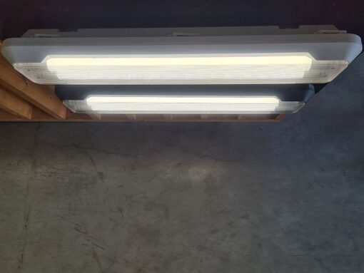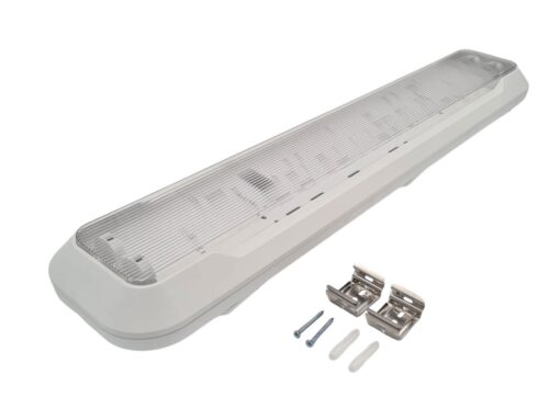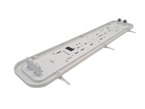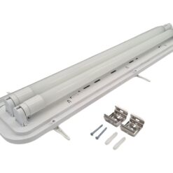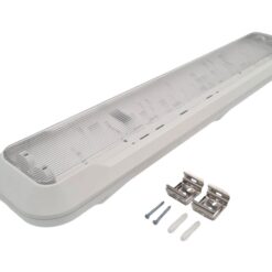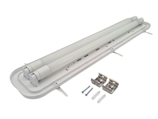 120cm Pro Design double LED TL T8 fixture waterproof white with reflector – IP65 waterproof – product color white – dimensions. 1289 x 138 x 84mm – material PC & iron reflector – mounting set included – two T8 Tube input – LED TL Tube not included – voltage 220-240V – one side L N connection – max 36 watts – compatible with 120cm TL tube