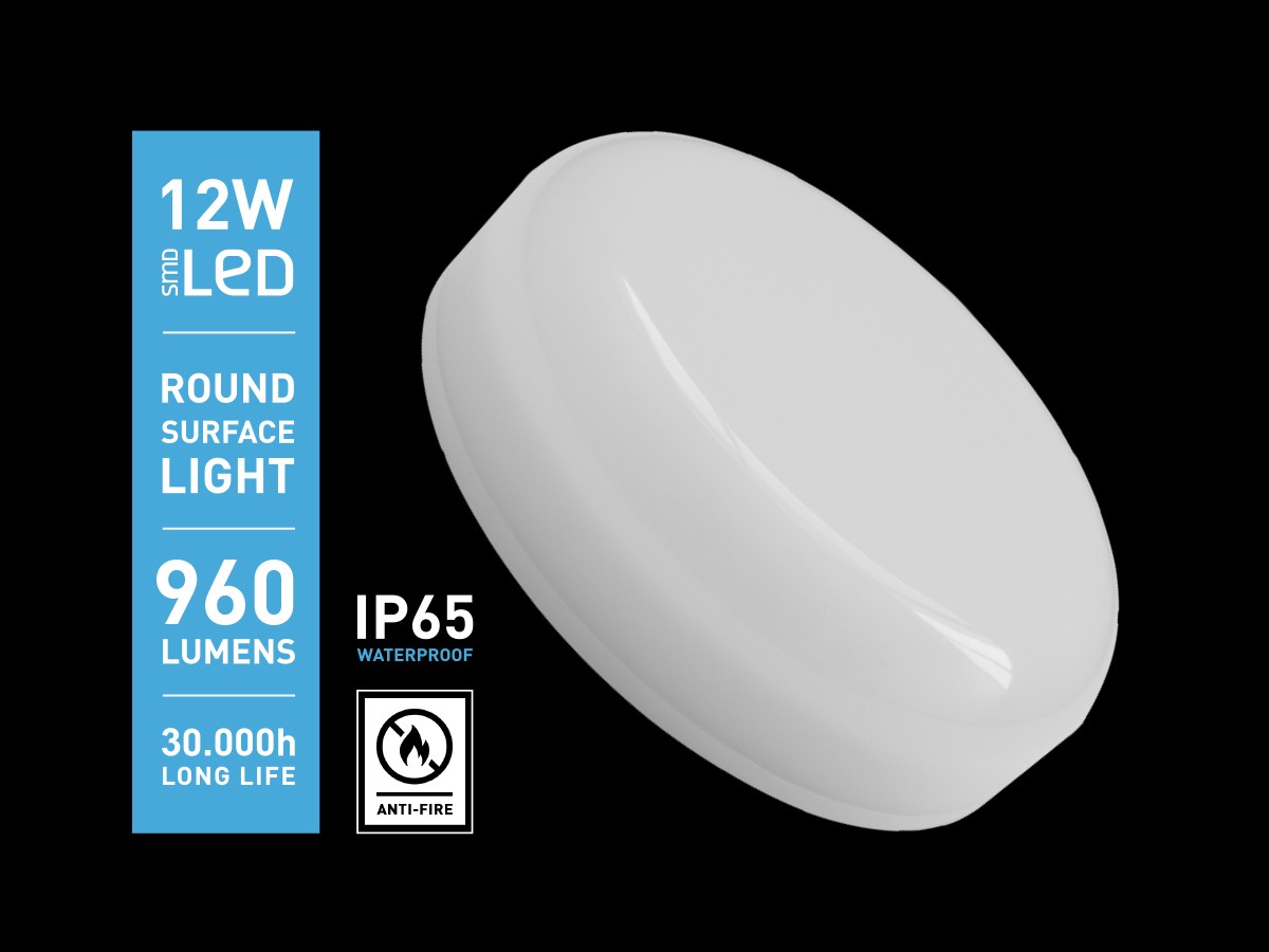 12 watt Surface-mounted LED Panels waterproof fire-resistant 6000K – luminous flux 960 lumen – light color daylight 6000K – flicker free – product color white – dimensions Ø 160 x 46mm – material PC and ABS – mounting set included – voltage 165-265V (50/60Hz) – material PC – suitable for wall and ceiling