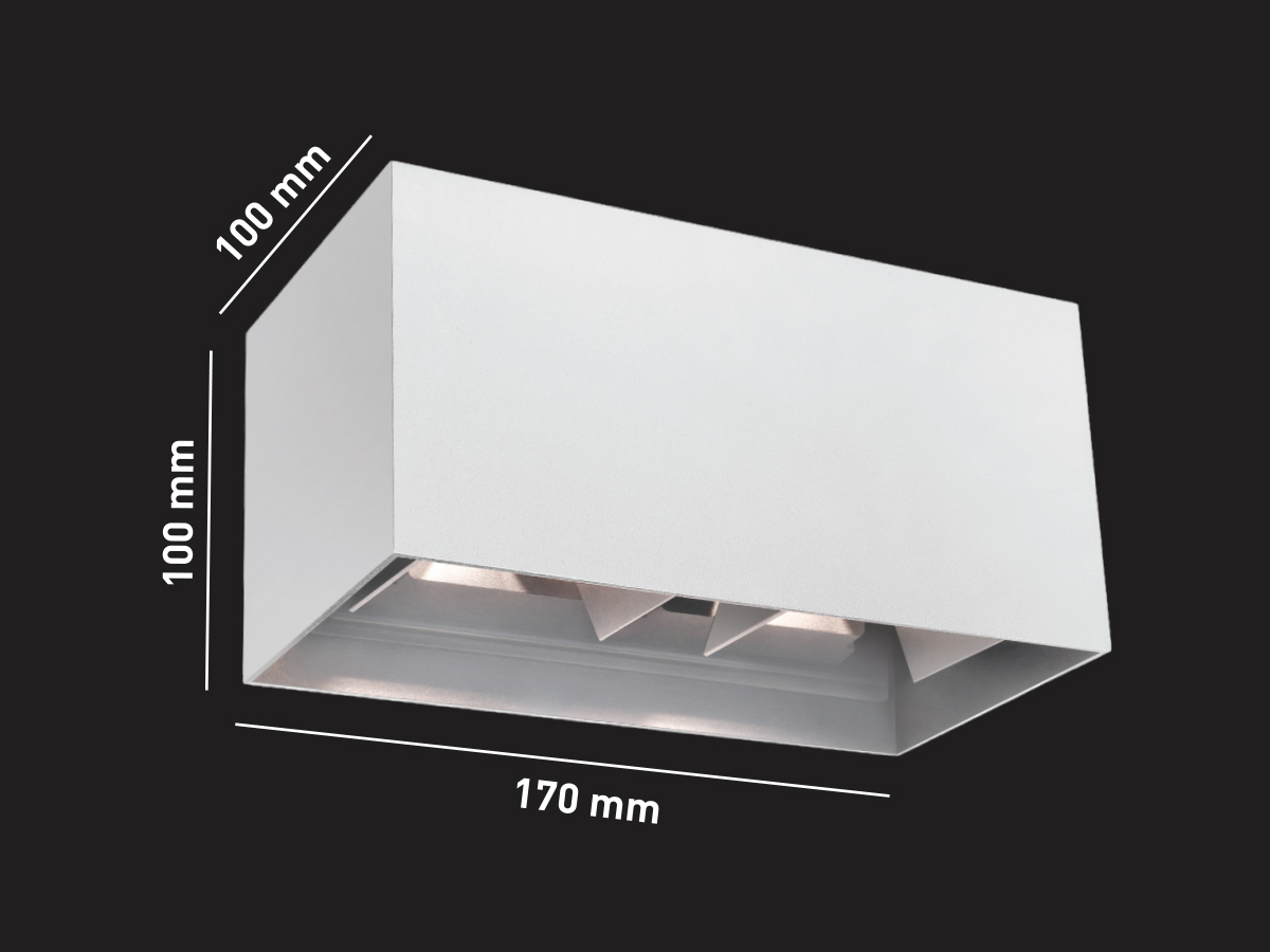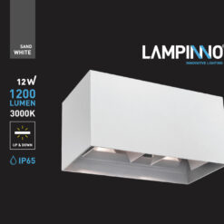 12 watt 4x3W LED sand white wall lamp rectangular double duo light adjustable – seal IP65 waterproof – adjustable angle of the light beams – light color 3000K warm white – luminous flux 1200 lumen – COB LED – material aluminum – top and bottom lighting – dimensions. 170mm x 100mm x 100mm – voltage 220-240V – mounting included – suitable for indoors and outdoors