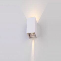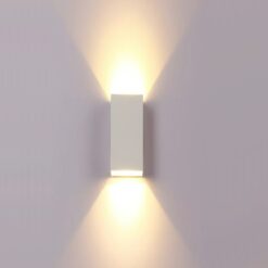 12 watt 2x6W LED sand white wall lamp rectangular duo light adjustable – seal IP65 waterproof – adjustable angle of the light beams – light color 3000K warm white – luminous flux 1160 lumen – COB LED – material aluminum – top and bottom lighting – dimensions. 170mm x 78mm x 70mm – voltage 220-240V – mounting included – suitable for indoors and outdoors.
