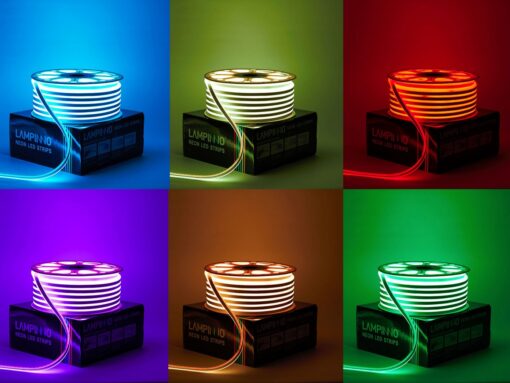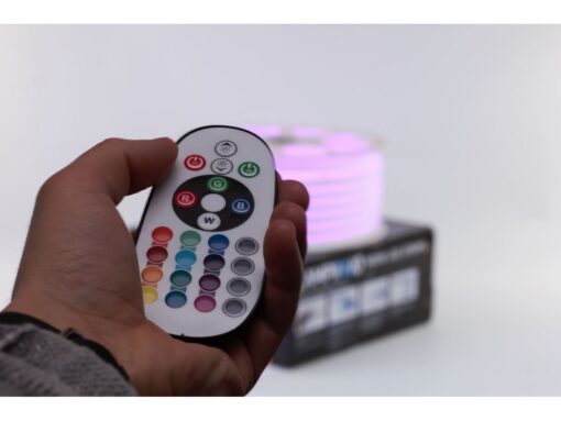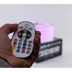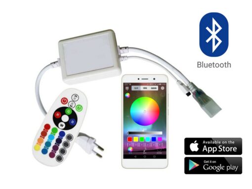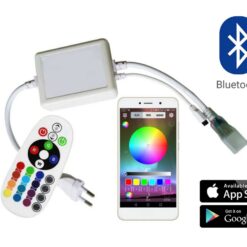 20 meters 8W/m SMD Neon LED Strip waterproof RGB Bluetooth – dimming and color replacement with remote control and mobile Bluetooth app – 120 LED/meter – light color RGB – IP65 waterproof – length 20m – can be shortened per 1 meter or more – lifespan 30,000 hours – voltage 220-240 V – SMD 5050 – 1 Neon LED Strip plug with Bluetooth and remote controller included