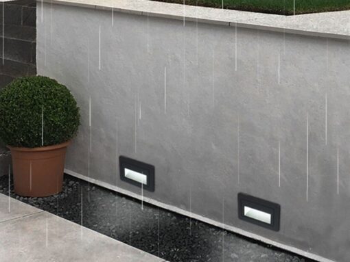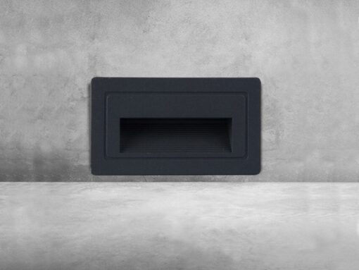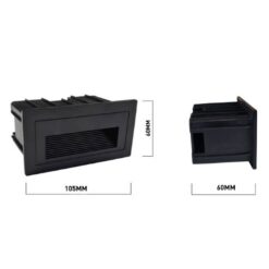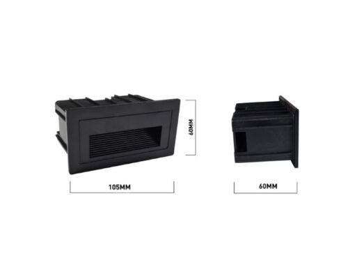 3 watt SMD LED waterproof recessed wall & stair lighting sand black – luminous flux 160 lumen – waterproof IP54 – light color Warm white 3500K – dimensions. 105 x 60 x 60 mm – inside & outside – material aluminum – lifespan 30,000 hours – voltage AC 85-265V