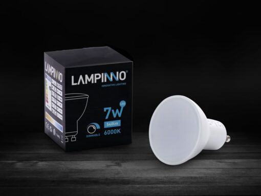 7 watt GU10 LED Spot Dimmable 6000K – SMD LED – luminous flux 540 lumen – light color daylight 6000K – beam angle 120° – product color white – dimensions. ø 50 x 55 mm – material PC – lifespan 25,000 hours – voltage 220-240v (50/60hz)