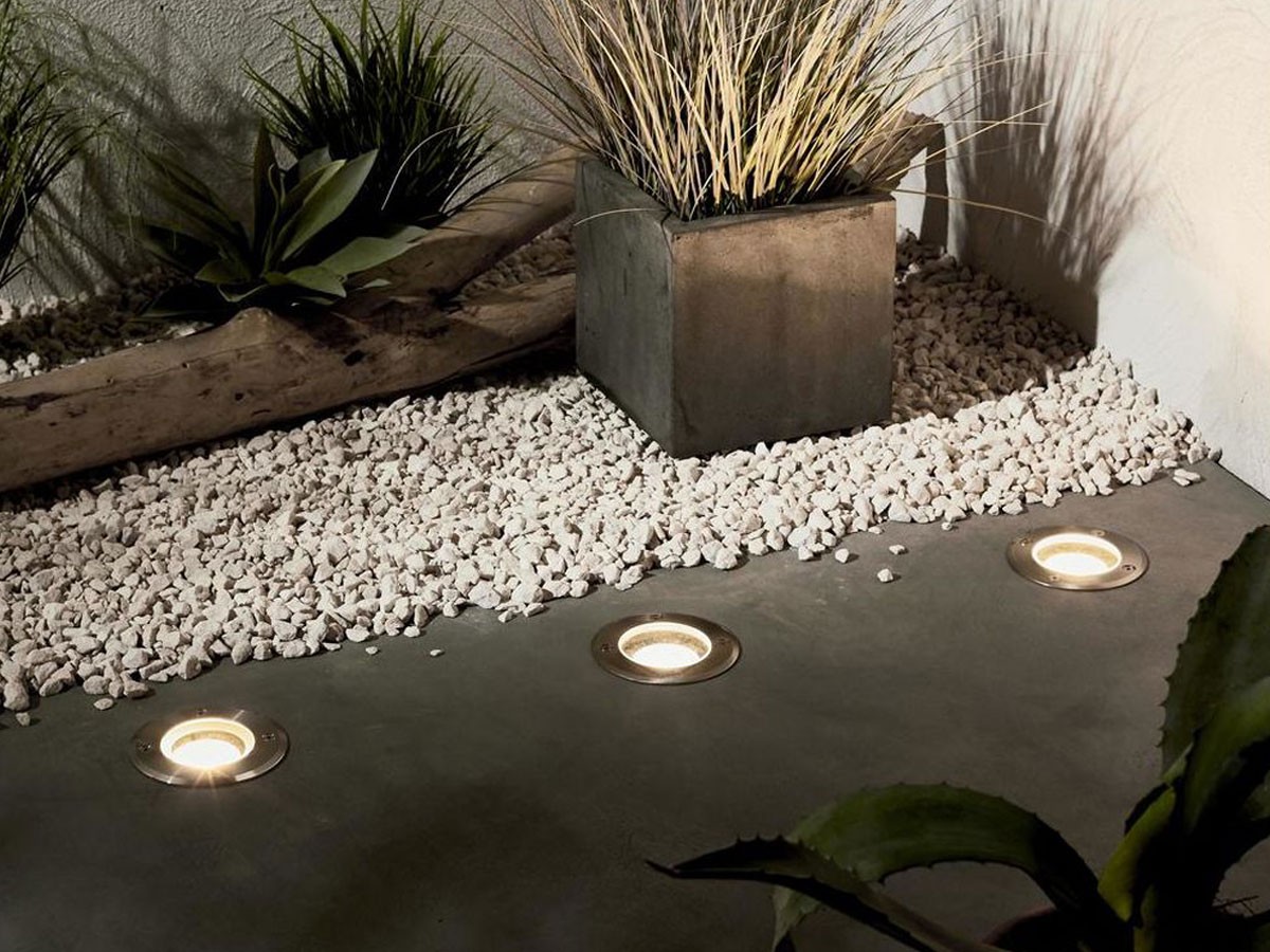 GU10 Ground spotlight round satin nickel – IP65 waterproof – material stainless steel stainless steel and glass – dimensions Ø 105mm x 135mm – voltage 220-240V – GU10 spotlight not included – mounting not included – suitable for indoors and outdoors