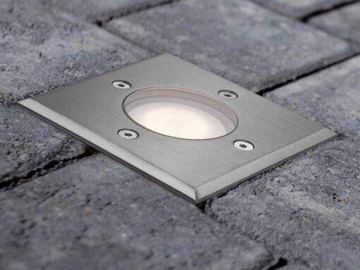 GU10 Ground spotlight square satin nickel – IP65 waterproof – material stainless steel stainless steel and glass – dimensions 105mm x 105mm x 135mm – voltage 220-240V – mounting not included – suitable for indoors and outdoors – GU10 spotlight not included
