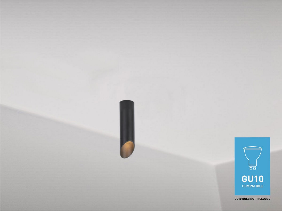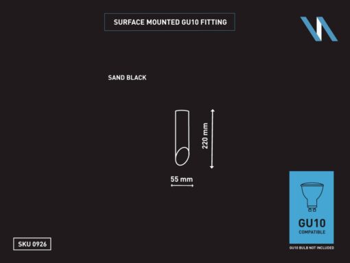 GU10 Surface-mounted design fixture cylinder sand black 22cm – seal IP20 – product color sand black – dimensions. Ø 55 x 220mm – mounting included – material aluminum – fitting GU10 – bulb not included – suitable for indoors – one bulb input – voltage 220-240V