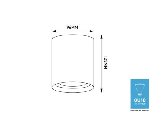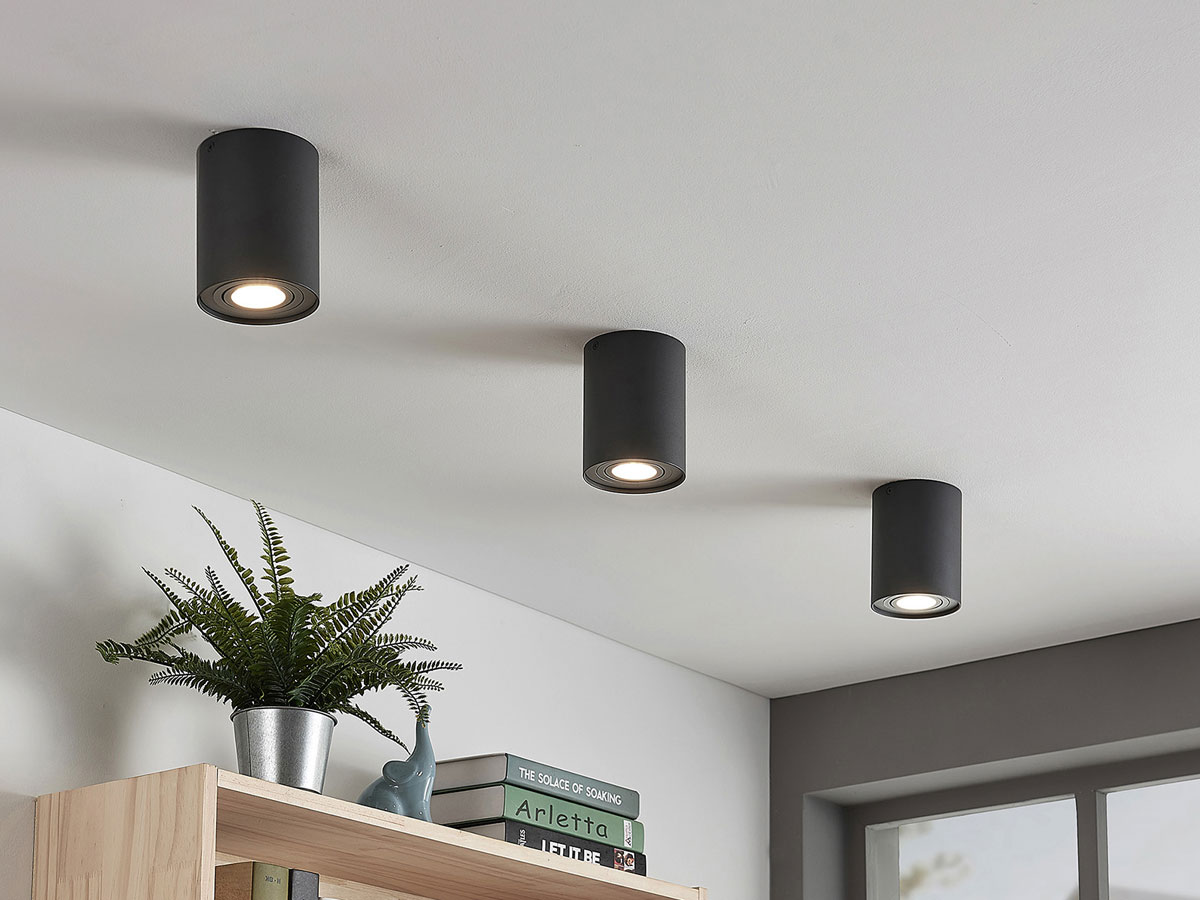 GU10 Surface-mounted spotlight fixture cylinder sand black tiltable – seal IP20 – product color sand black – dimensions. Ø 96 x 125mm – mounting included – material aluminum – fitting GU10 – bulb not included – suitable for indoors – a bulb input – voltage 220-240V