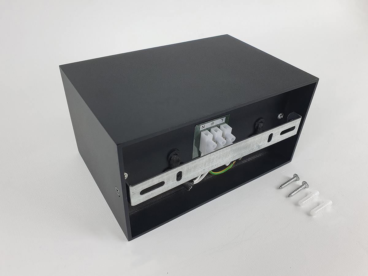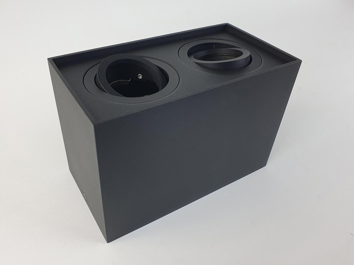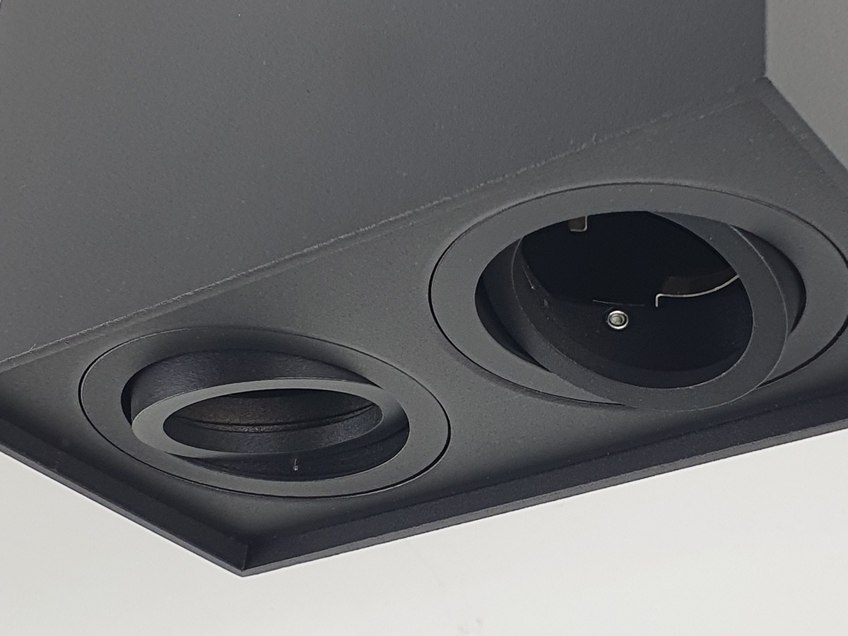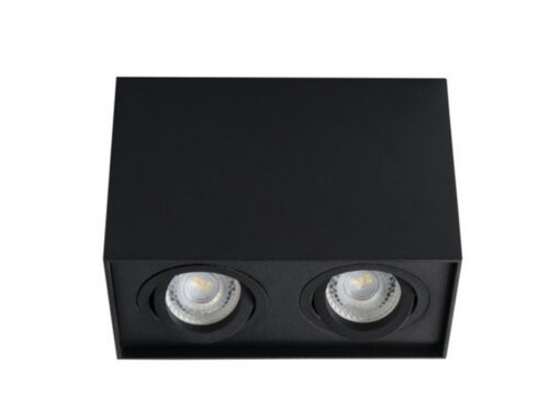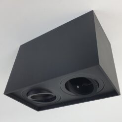 GU10 Surface-mounted spotlight fixture rectangular dual fittings sand black tiltable – seal IP20 – product color sand black – dimensions. 180 x 96 x 125mm – mounting included – material aluminum – fitting GU10 – bulb not included – suitable for indoors – 2 x bulb input – voltage 220-240V