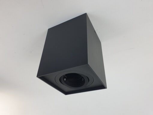 GU10 Surface-mounted spotlight fixture rectangular sand black tiltable – seal IP20 – product color sand black – dimensions. 98 x 98 x 125mm – mounting included – material aluminum – fitting GU10 – bulb not included – suitable for indoors – a bulb input – voltage 220-240V