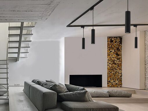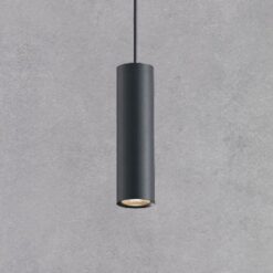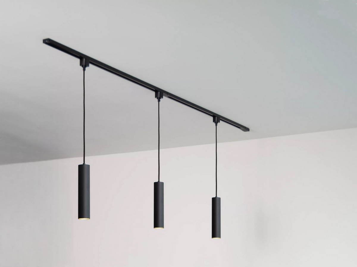 track light spot GU10 Decorative Hanging lamp cylinder 24cm – suitable for 1 phase 2 wire track light – sealing IP20 – product color sand black – dimensions Ø 55 x 240mm – material aluminum – cable length 100cm – fitting GU10 – bulb and track not included – one bulb input – max 50 watts – voltage 220-240V