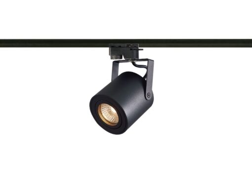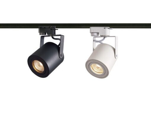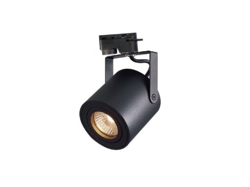 track light spot GU10 fixture cylinder sand black rotatable – suitable for 1 phase 2 wire track light – seal IP20 – product color sand black – dimensions. Ø 80 x 84mm – rotatable 360° and tiltable 210° – material aluminum and PC – mounting included – fitting GU10 – bulb and track not included – suitable for indoors – one bulb input – voltage 220-240V – max 35 watts
