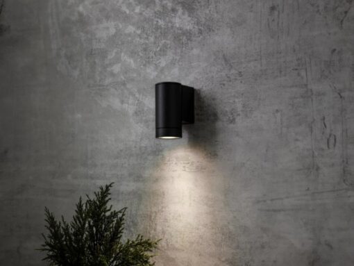 Wall lamp Cylinder GU10 fitting sand black waterproof – IP54 waterproof – dimensions. Ø 64 x 95 mm – material aluminum and glass diffuser – mounting included – GU10 fitting – bulb not included – suitable for indoors and outdoors – one bulb input – voltage 220-240V – max 35 watts